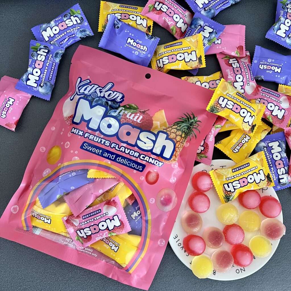300g Jam filled soft candy available in Vietnam. Blueberry, pineapple, litchi mixed flavors in one bag. Liquid jam burst in your mouth! 300 g/bag, 16 bags/ctn, if interested in, just call us! #gummycandy #gummy #fruitgummy #OEMCandy #candysupplier #candy #softcandy #jamcandy